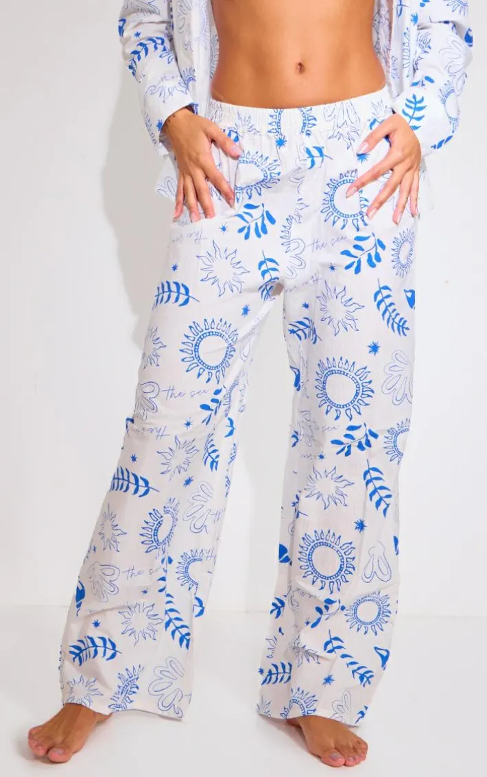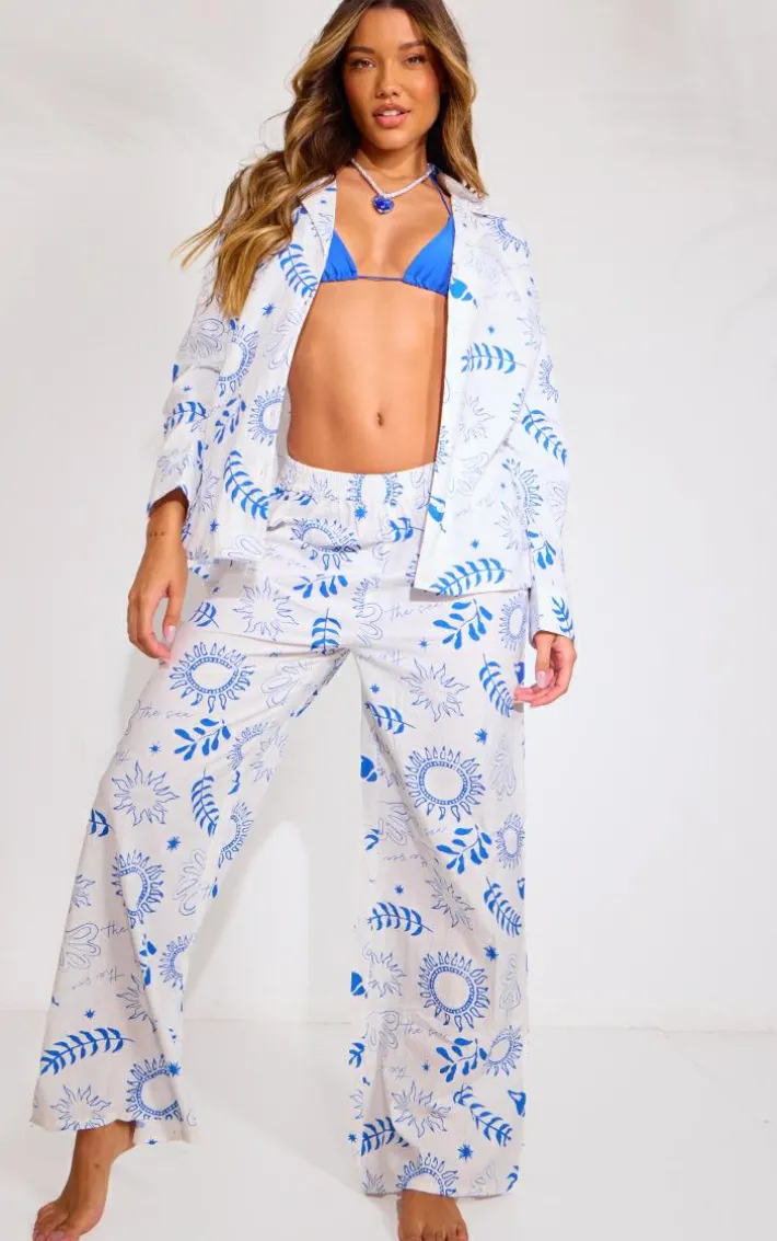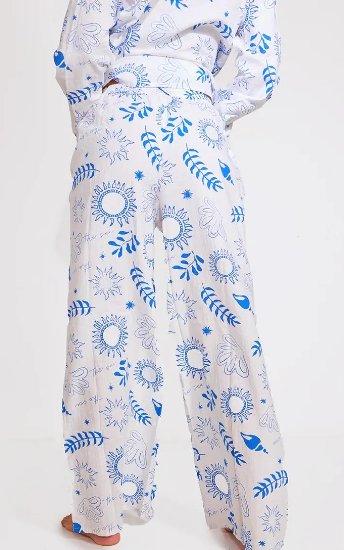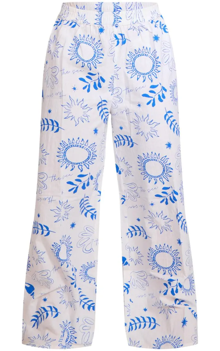 When the vacay calls so do these white sea print wide leg beach pants. Brought to you in a white hue material with a sea print design and wide leg fit, these beach pants are at the top of our most wanted list. Style with the matching shirt over a blue bikini set and your fave accessories for a look like no other. It’s official, we’re in love.