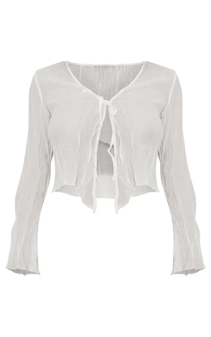 Get ready to earn all the compliments in this dreamy white sheer textured tie front blouse, it is perfect for dressing up or down. This blouse features a white sheer textured material with a tie front design and a relaxed fit. Team with hot pants, sandals and your go to accessories to elevate the look further.