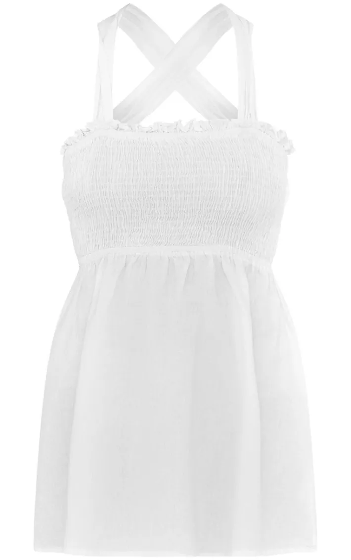Make room in your new season wardrobe for this dreamy white shirred cross back shift dress, it’s a definite yes from us whatever your plans. This dress features a white shirred material with a cross back design and a figure-flattering fit. Style with sandals and your fave accessories to elevate the look further.