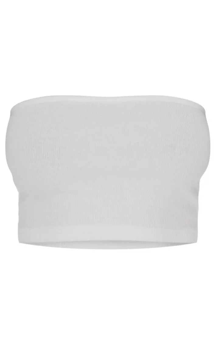 Say hello to your newest styling staple with this white soft basic ribbed bandeau crop top. Made from a white soft basic ribbed material with a bandeau neckline and a figure-flattering fit, what more could you want. Perfect for dressing up or down, this crop top is a yes from us. Team with statement-hue jeans, gold accessories and clear heels for a weekend-worthy finish.