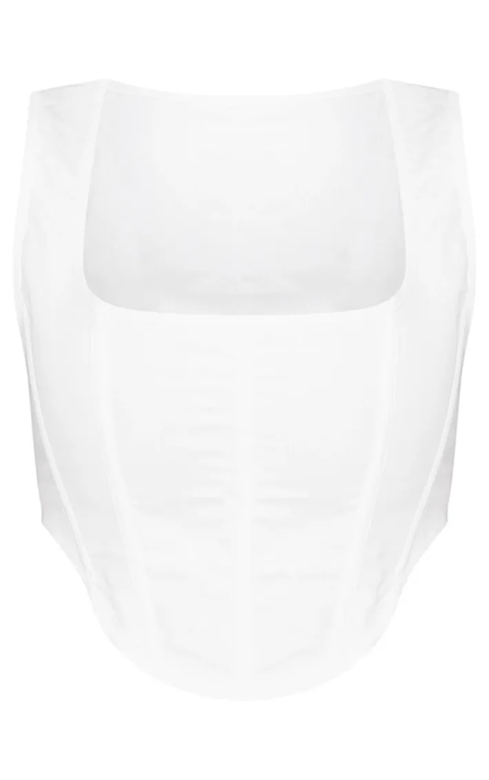 We are obsessing over this crop top for your new season look. Featuring a white bengaline material with boned detail and corset style, what’s not to love? Style with wide leg bottoms and strappy heels for a seriously chic look.