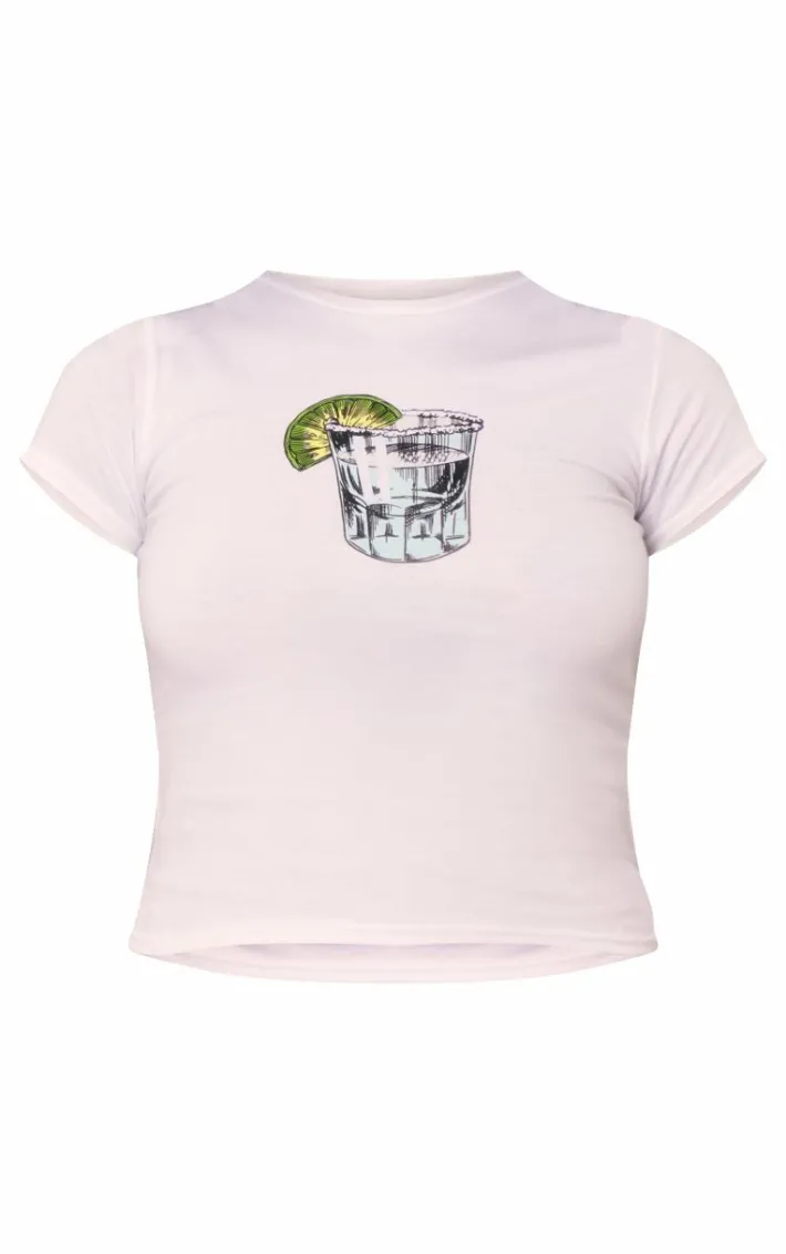Upgrade your off-duty wardrobe with this white tequila print fitted t shirt, we’re seriously obsessed. Brought to you in a white material with a tequila print and fitted style, this t-shirt is unreal. Pair with striped pants, fresh kicks and your go-to jewelry for a cosy but stylish look.