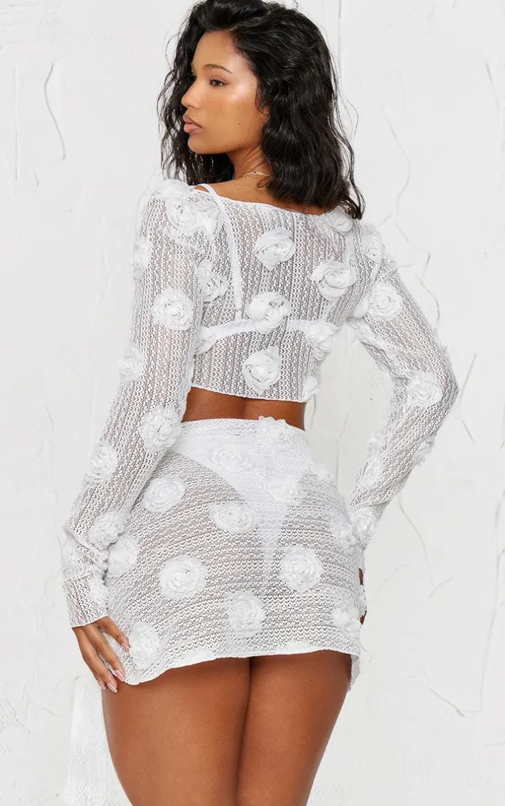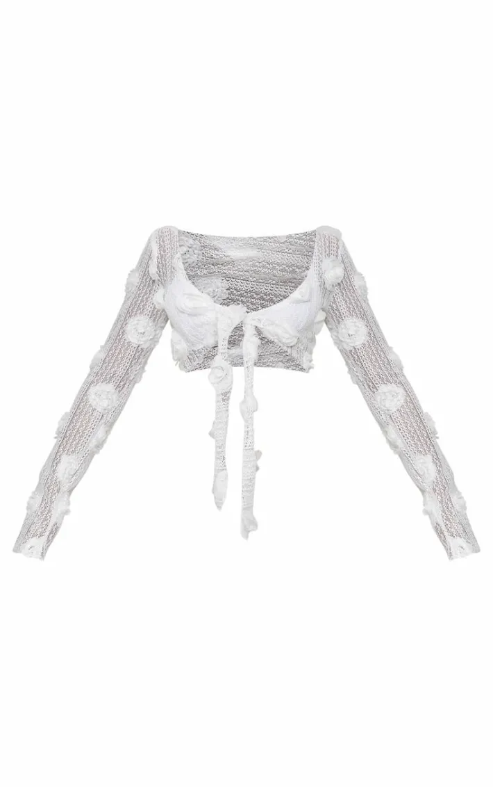 Say hello to your new vacay staple with this white textured flower trim tie front beach top. This beach top is brought to you in a white texture material with a flower trim and a tie front, how could you turn this own? Style this beach top with the matching sarong and bikini paired with your dreamy high heels for a flawless finish.