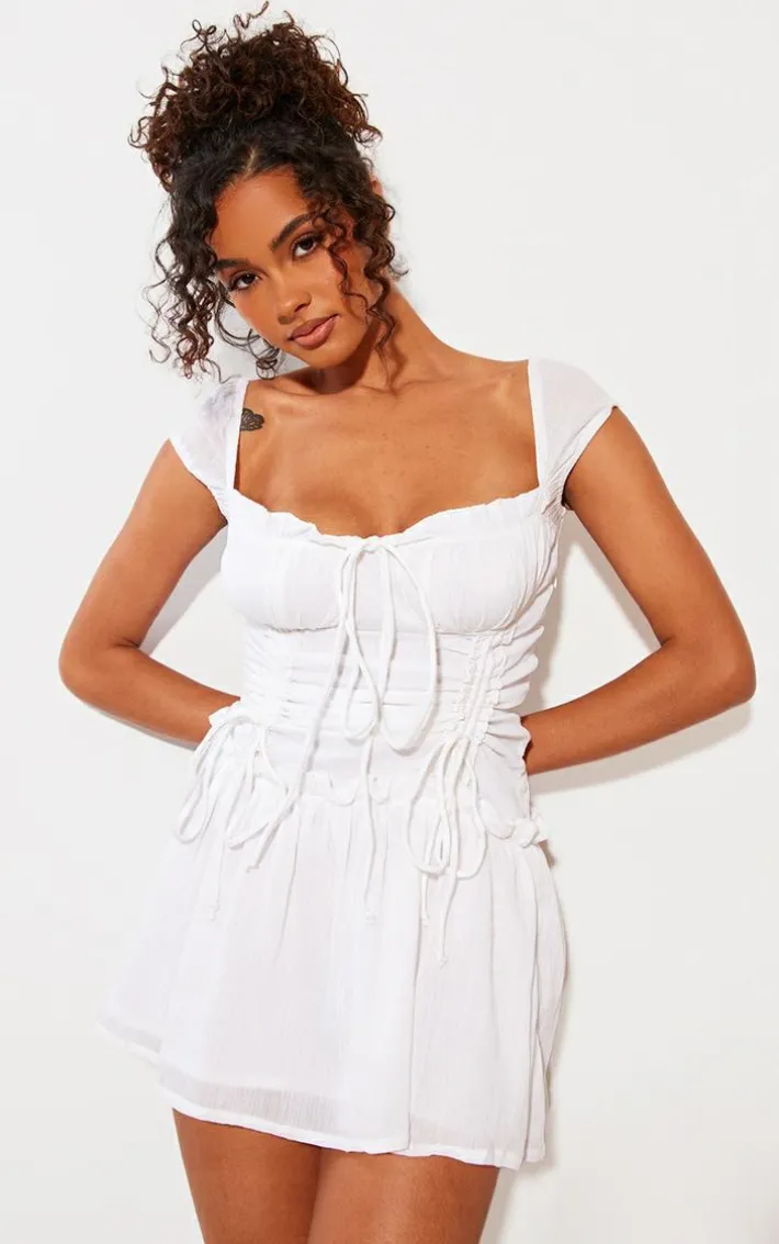 Channel all the glam vibes with this white texture ruched puff sleeve bodycon dress. This bodycon dress is brought to you in a white textured material with ruched detailing and puff sleeves, what’s not to love? This bodycon dress is calling your name. Complete the look by styling this with your dreamy high heels and accessories for a flawless finish.