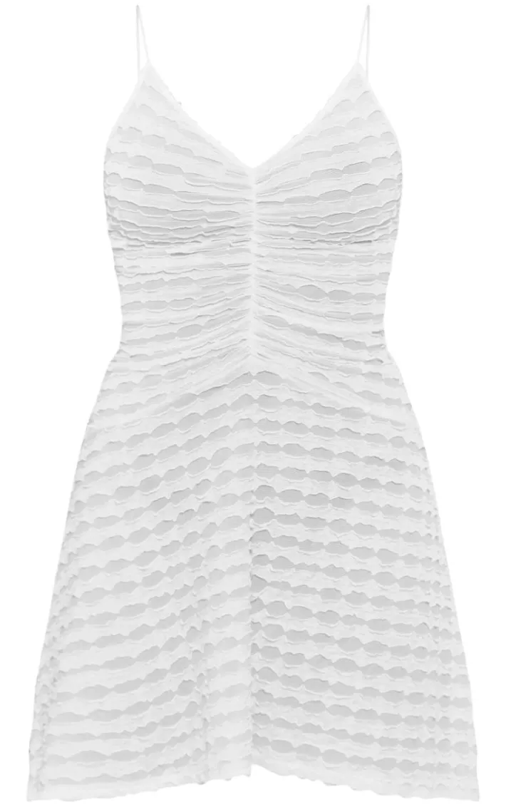 Create a look no one will forget with this white textured ruched strappy shift dress. Brought to you in a white textured material with ruched detailing and a strappy style, this shift dress will have you standing out from the rest. Style with cowboy boots and accessories for a combo we’re crushing on.