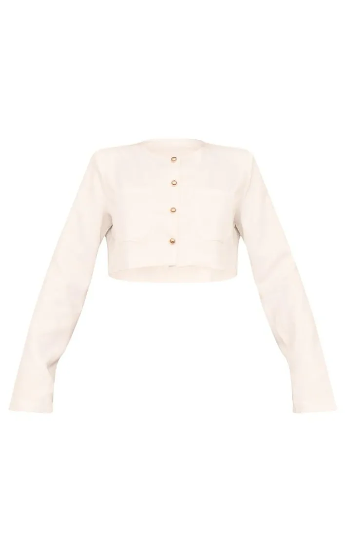 This white textured tailored cropped jacket is at the top of our new season wish list. Brought to you in a white textured material with a tailored design, what’s not to love? Its cropped length is all you need to be your new go-to. Simply style with a pair of jeans, a basic cropped tee and your go-to sneakers for a fool proof finish everyone is obsessing over.