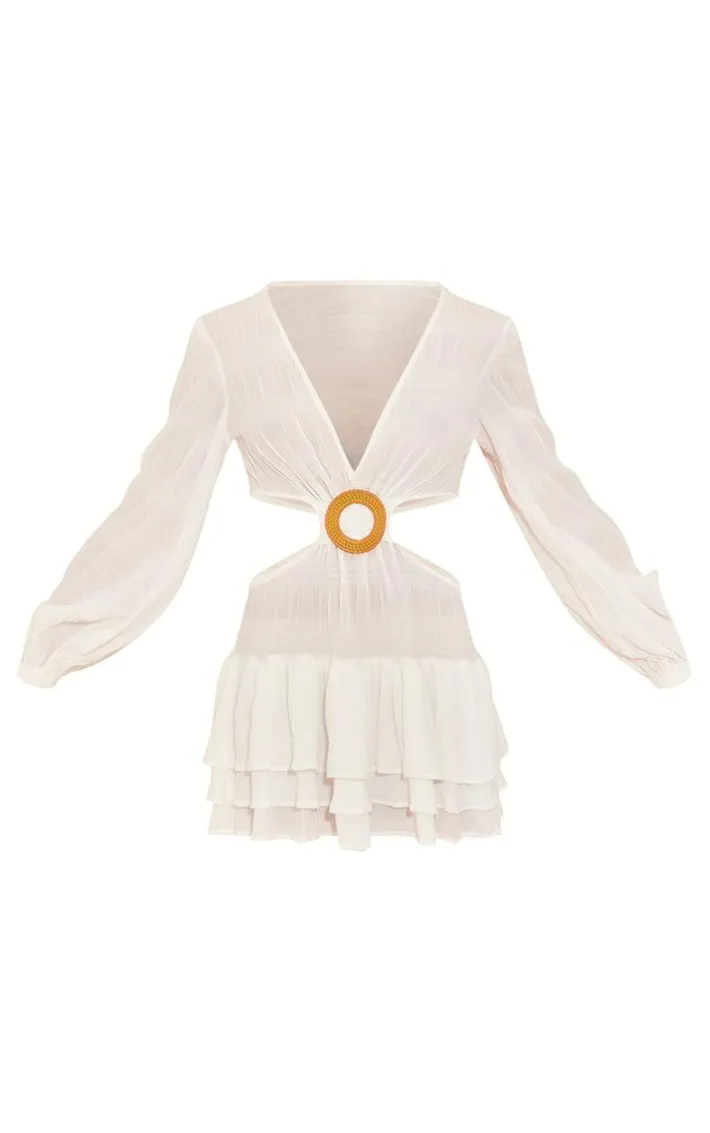 Add a touch of luxe to your outfit of the day with this white textured tiered ring detail shift dress, you won’t be able to resist. This dress features a white textured material with a ring detail and a tiered design. Pair this shift dress with sandals and gold accessories to elevate the look further.