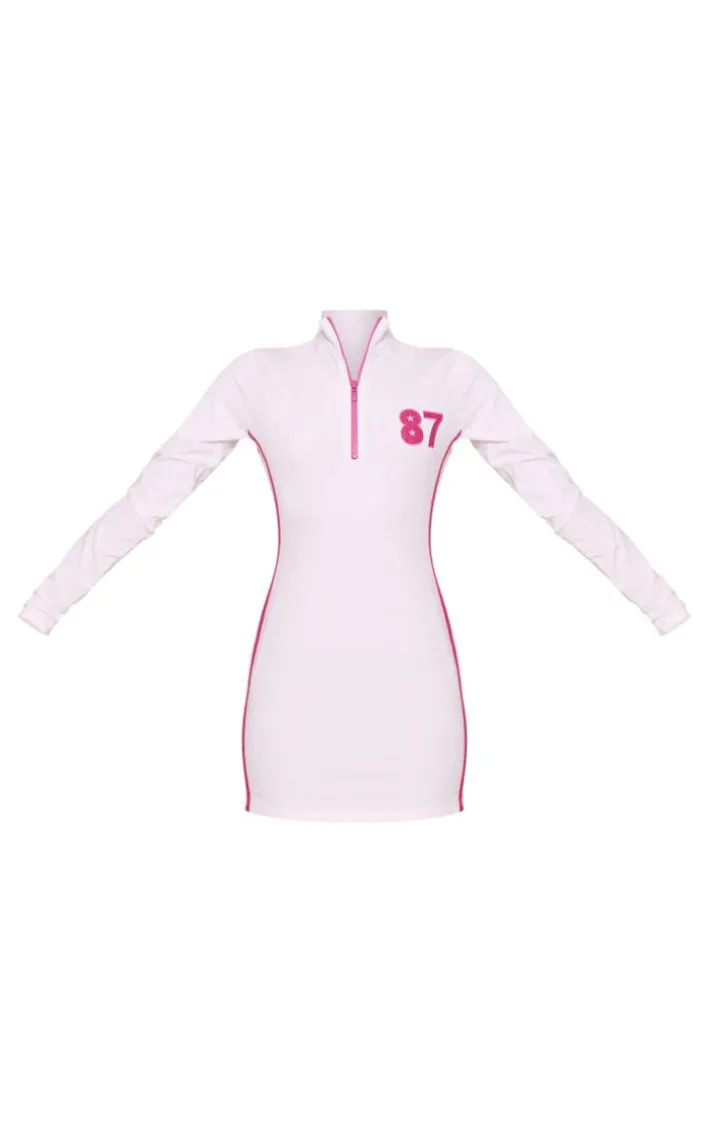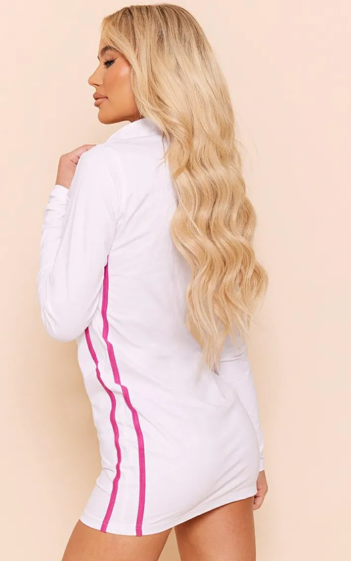 Bring all the edge to your new season wardrobe with this white varsity contrast half zip bodycon dress, you’re sure to be earning all the compliments. It is made using a white material with a contrasting half zip design and a varsity print, we’re obsessed. Team this dress with your fave sneakers and some sunglasses for a chic, off-duty look.