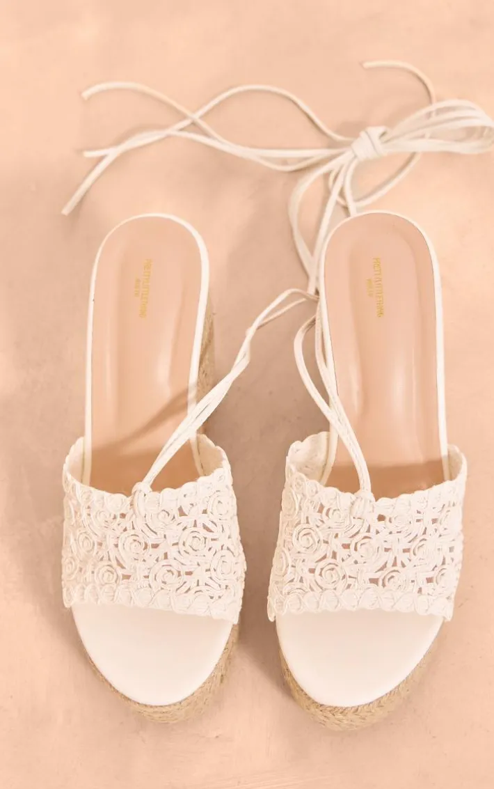 Take your look to a whole new level with these white wide fit PU round toe knotted platform lace up heeled wedges. These wedges are brought to you in a white PU material with a knotted design and a lace-up fastening, what’s not to love? These wedges are calling your name. Style these with your outfit of the day for a luxe feel.