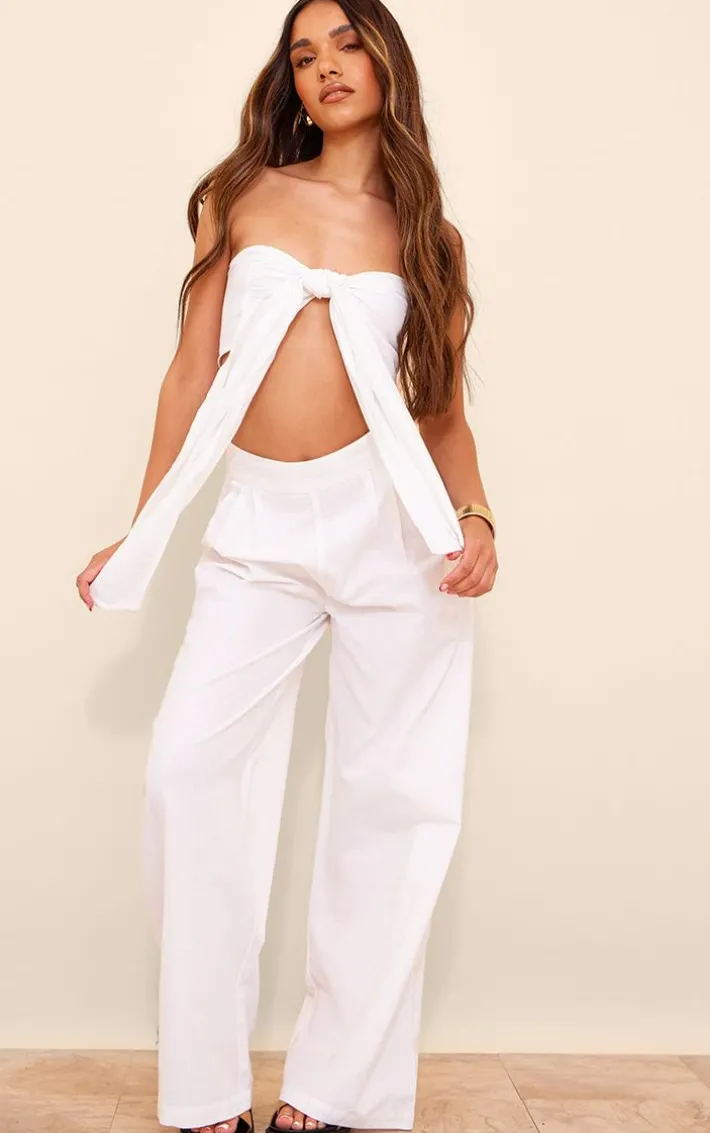 We’re totally in love with these white wide leg linen look pants for your weekend plans. It is made from a white linen look material with a wide leg and a high waisted fit, how could you not be obsessed? These pants give you endless styling potential and is bound to give your look that extra chic touch. Style seamlessly with the matching top, clear heels and gold accessories for a seriously luxe finish.