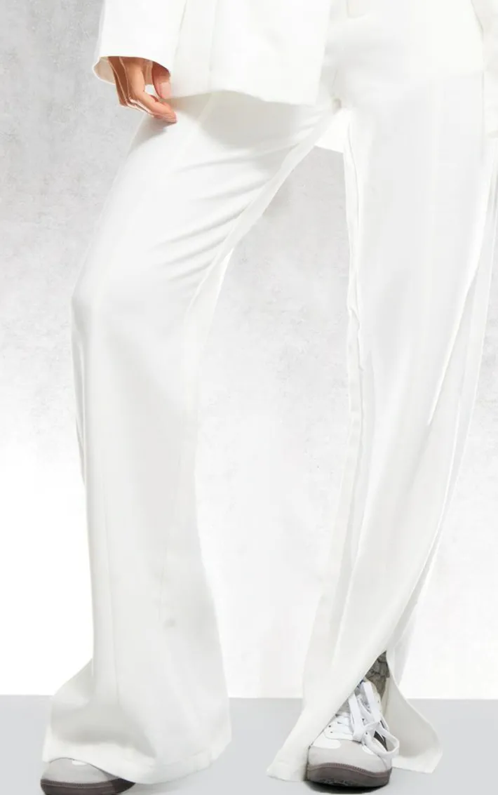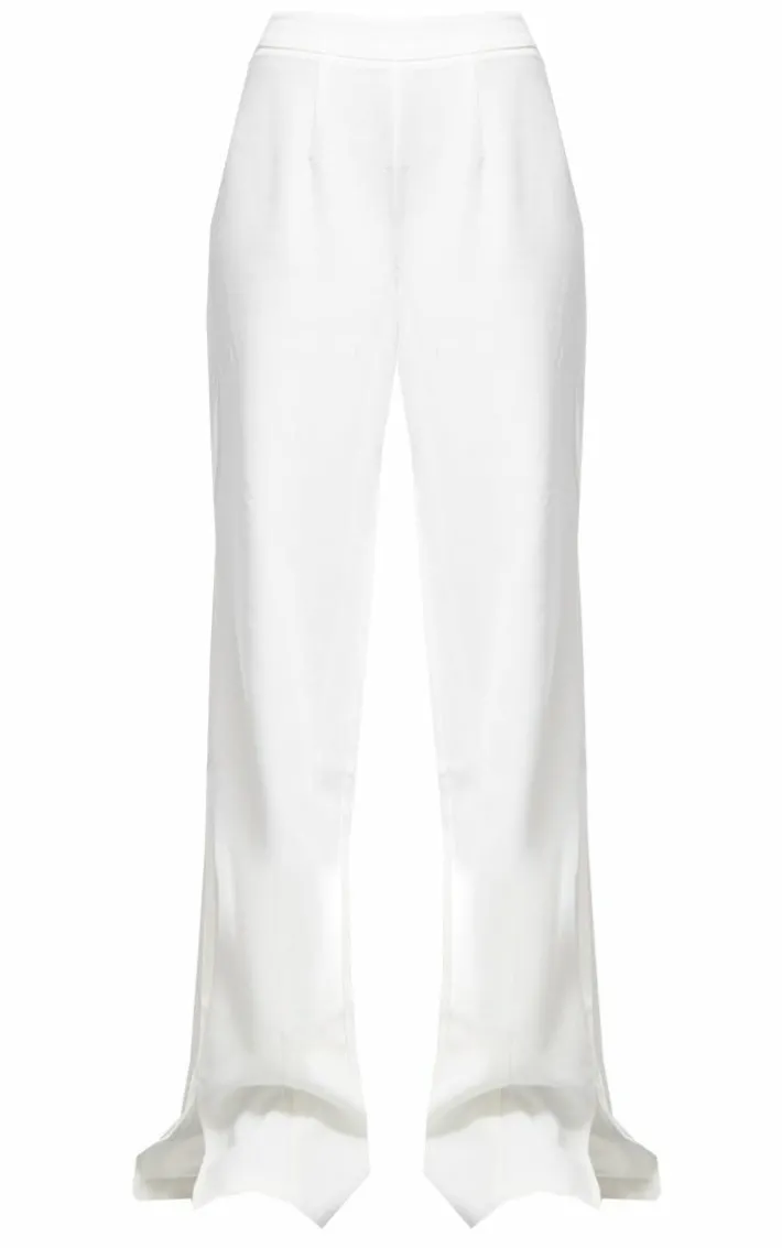 Get ready to nail major trends this season with these white wide leg split hem pants, they’re here to take your look from day to night with ease. With a white material, a wide leg design and a split hem style, you won’t be able to resist these pants. Team these white pants with the matching blazer, slip-on heels and a mini bag for a look everyone will be asking about.
