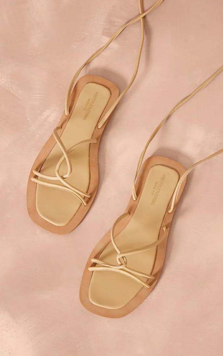 Show off your glam side with these wide fit beige real leather round toe lace up flat sandals. Brought to you in a wide fit beige real leather round toe lace up flat sandals. Brought to you in a beige real leather material with a round toe design and a lace up fastening, we are obsessed. Team these flat sandals with your go-to look to turn heads.