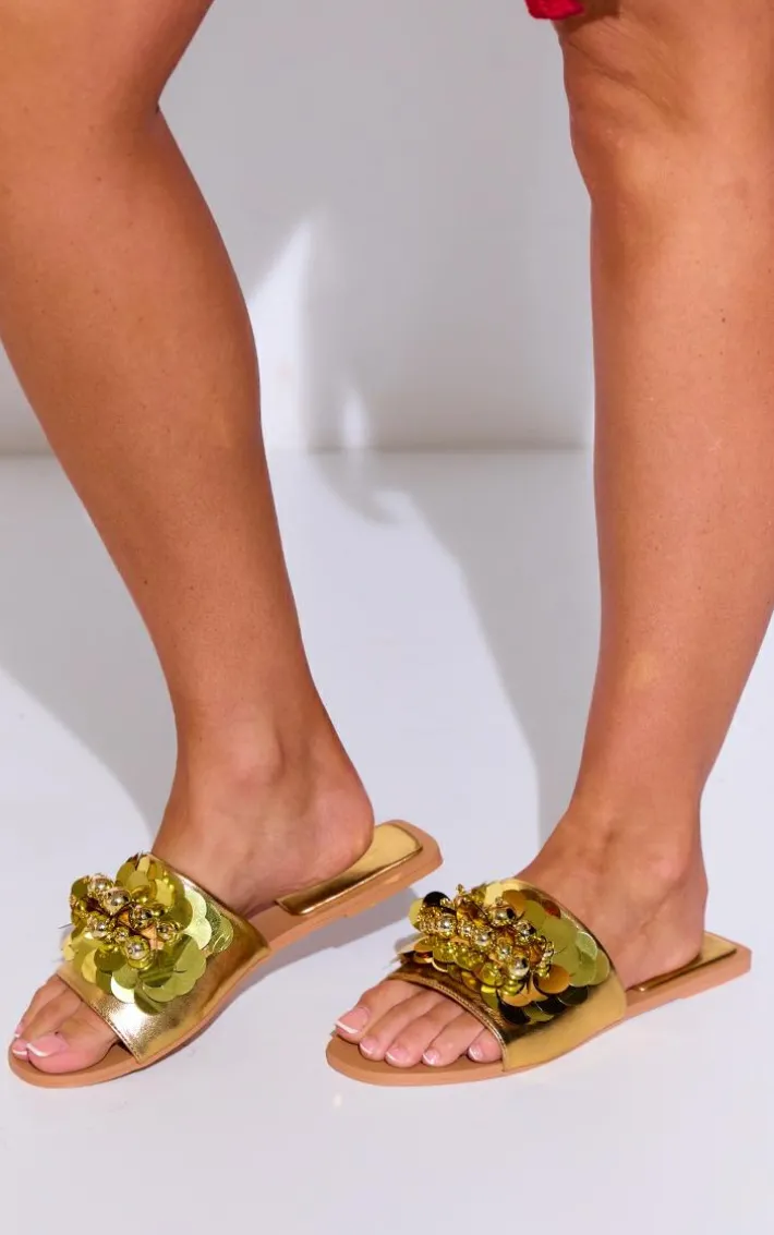 Your outfit of the day won’t be complete without these wide fit gold PU round toe sequin strap mule sandals. Brought to you in a gold PU material with a round toe fit and a sequin strap detail, we are obsessed with these sandals. These unreal wide fit mule sandals are an essential no matter what the occasion. Team these dreamy sandals with your outfit of the day to feel chic this season.