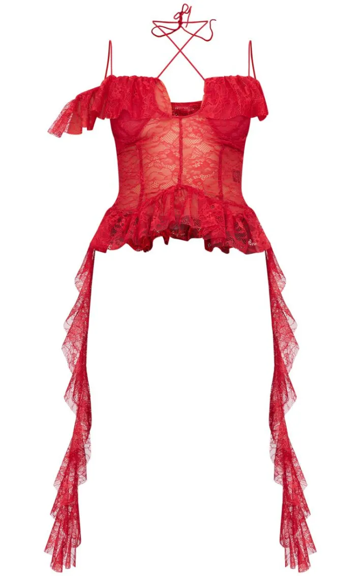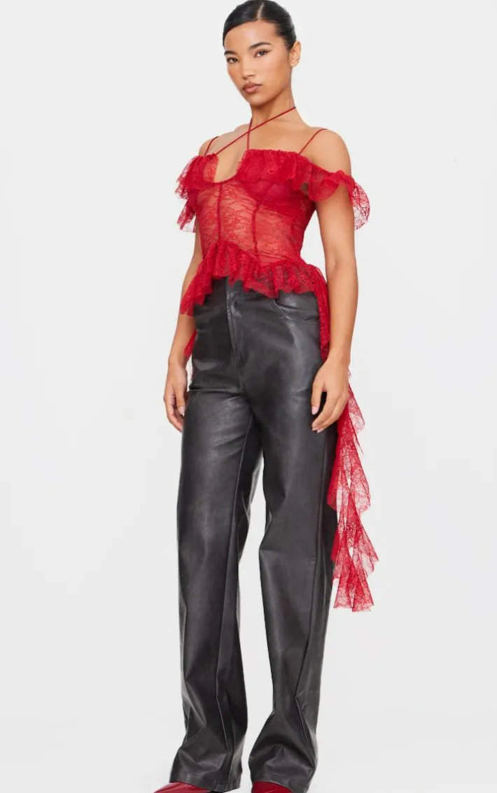 Look all kinds of chic in this wine lace ruffle halterneck long top. Brought to you in a wine hue lace material with a ruffle design and halter neckline, this long top is a must have for all your styling needs. How can you resist? Team with faux leather pants, slip on heels and simple accessories for a look that’s guaranteed to get you noticed.