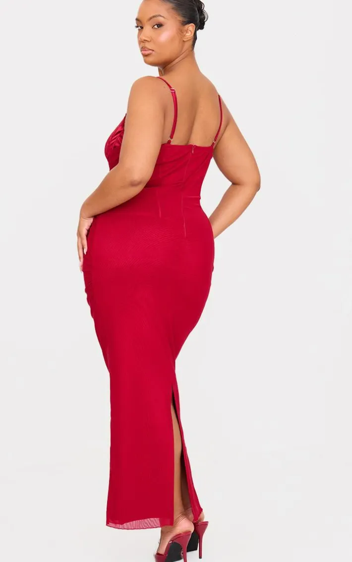 Be the center of attention with this wine ruched maxi dress with corset underlay. Brought to you in a wine material with a ruched detail and a corset design, you are sure to turn heads. Team this maxi dress with a pair of heels and your fave accessories for a fool proof finish.