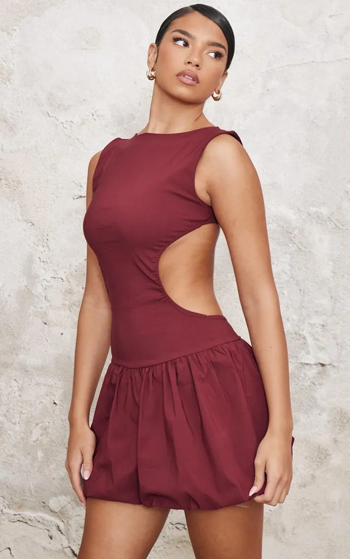Own the night in this wine stretch woven cut out backless shift dress. Brought to you in a wine stretch woven material with a cut out detail and a backless design, what more could you want? Team this unreal shift dress with a pair of brown heels and gold accessories of your choice for a fool proof finish.