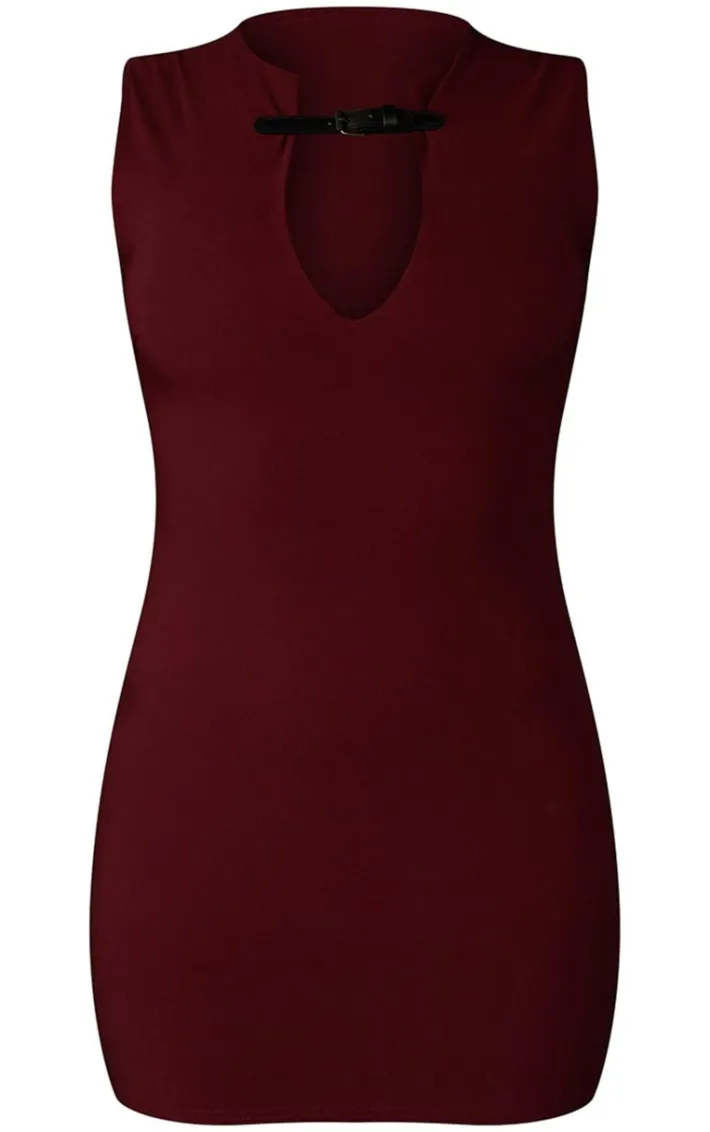 This wine stretch woven keyhole belted bodycon dress is a must have for the season ahead. Brought to you in a luxe wine hue, with a flattering stretch woven material, keyhole design and belted detail, reach for this whatever your weekend plans. Style with a pair of burgundy tights and court heels for a chic touch to any seasonal look.