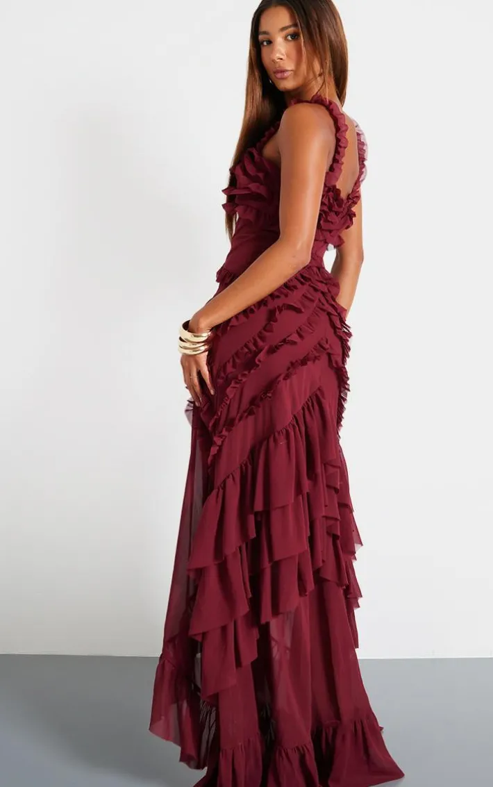 Steal the stares for all the right reasons in this wine tiered frill detail maxi dress. Brought to you in a wine hue material with a tiered design, frill detailing and a figure-worshipping maxi fit, how can you not fall in love? Style this maxi dress with heels and some glam accessories for an occasion look we’re loving.