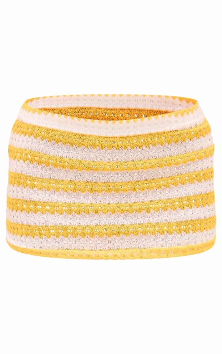 Brighten up your new season wardrobe with this yellow striped textured jersey mini skirt. Brought to you in a yellow hue textured jersey material with a striped design and a mini fit, how can you resist? Style this mini skirt with a crop top, sandals and accessories for a look that is sure to make heads turn.